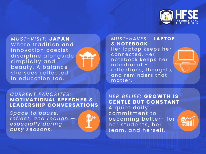 She values being part of a community that focuses on growth, purpose, and holistic development. At HFSE, students are prepared not only for examinations, but also for life.
