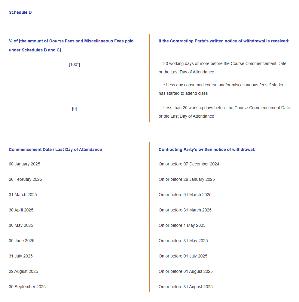 - For any Course Withdrawal or Deferment, the School would need to obtain the student’s parent / legal guardian’s written consent if they are under 18 years of age.